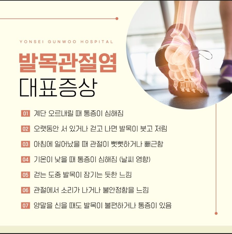요즘 젊은 층에서도 발목관절염이 증가한다는 얘기를 들었고, 누군가는 초기에 발견해 수술 없이 치료하길 바라기 때문이에요.